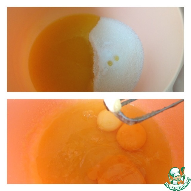 - Сахар (150-тесто, 100- начинка) — 250 г