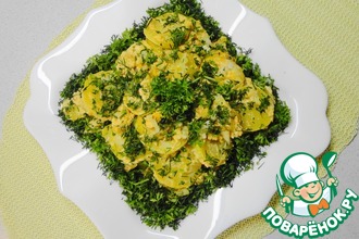 Перед самым концом приготовления в жаркое добавила специи, а поверх насыпала сухую зелень.