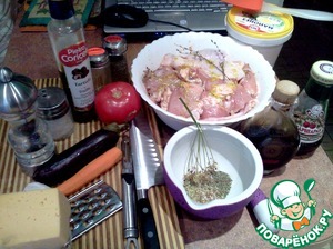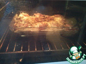 Маринад: Аджика, чеснок, дижонская горчица. (или просто горчица) чуть масла. Перемешиваем и придавливаем тарелкой руками. Все! Можно часа на 2-3.