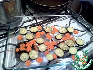 Кладем нарезанные баклажанчики и морковь. Можно больше.