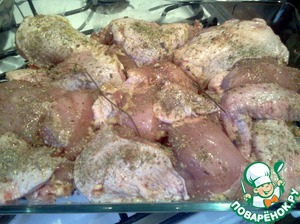 Да, чуть не забыл. Курицу нарезаем на порционные куски,
