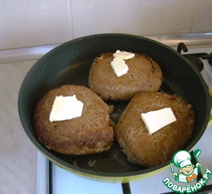 Теперь укладываем на каждую зразу по кусочку масла, огонь убираем до минимума, закрываем крышку и тушим 15-20 минут. -