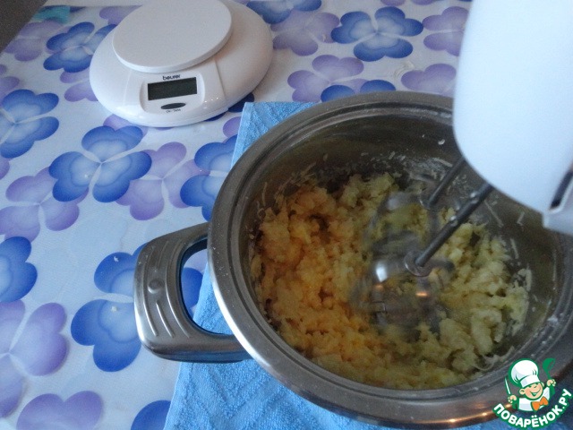 Натереть на мелкой терке сыр. С помощью миксера замесить в тесто 1 яйцо и сыр