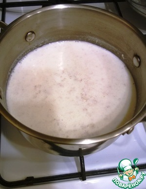 Вот рецепт в оригинале. Я решила заменить воду молоком. Бутылка – это мера объема, равная 600 мл. Насчет пропорций замены овсяной крупы овсяными хлопьями были сомнения, но в конечном итоге получилась отличная нежная консистенция.
