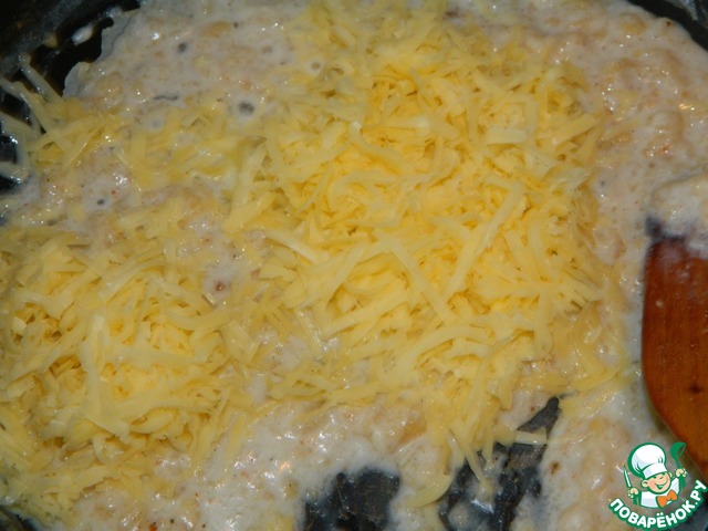 • Как начали кабачки становиться мягкими добавим к ним сырный соус, яйцо, соль, перец, чеснок. Перемешаем.