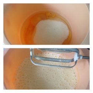 Яйца взбить с сахаром до пышной массы, добавить кефир и взбить