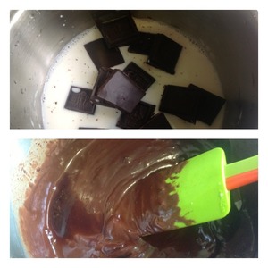 Шоколад растопить с молоком при постоянном помешивании на медленном огне. Добавить соевый соус и перемешать