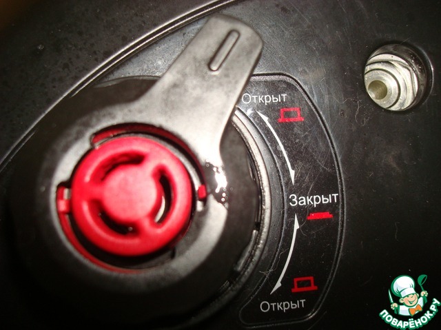 • После вторичного звукового сигнала отключаем режим подогрева и отключаем мультиварку из сети. Через 15 минут аккуратно переводим клапан в положение открыто и спускаем пар.