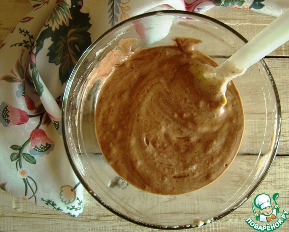 Готовим тесто так же, как описано выше, и добавляем 1 ст. л. какао-порошка с мукой и разрыхлителем.