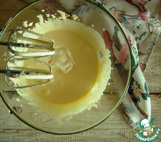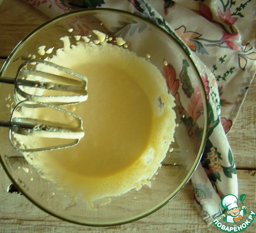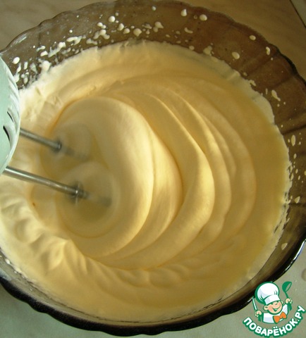Тонкой струйкой введем его в наш сливочный крем, продолжая взбивать. -