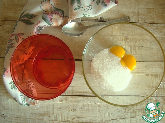 Желтки отделяем от белков. В желтки добавляем сахар. Белки убираем в холодильник. -
