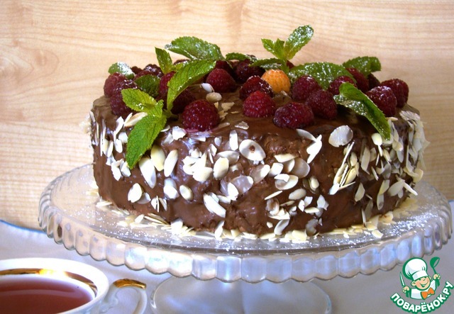 Дальше полет Вашей фантазии. Я же присыпала бока миндальными лепестками и верх торта украсила малинкой и мятой.
