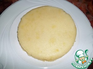 Сварить густую пшеничную кашу, следуя инструкции на упаковке. У меня на 120г крупы 180мл. воды. Воду довести до кипения, посолить, всыпать крупу (по желанию можно добавить немного сливочного масла) и варить на слабом огне, помешивая, 5 минут. Готовую кашу выложить в смазанную маслом форму (круглую или квадратную, как вам нравится), разравнять поверхность и остудить.