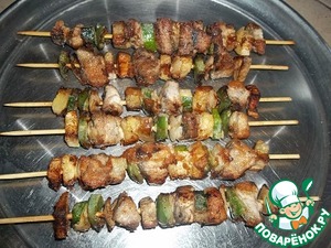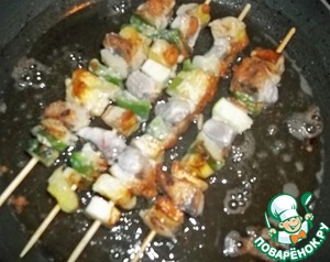 Обжарить шашлычки со всех сторон в разогретом масле на сковороде.