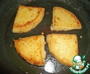 Кащу разрезать на кусочки, со сковороды убрать лишнее масло и обжарить с двух сторон до румяной корочки.