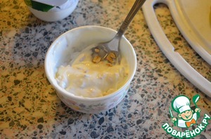 Смешиваем йогурт, хлопья, сахар, поливаем яблоки и отправляем в микроволновку на 2 минуты, через каждые 30 секунд микроволновку открываем.