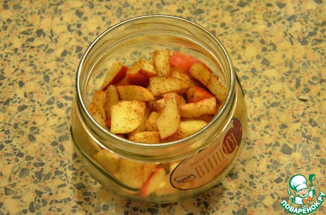 Нарезаем яблоки, посыпаем корицей, отправляем в микроволновку на 1 минуту