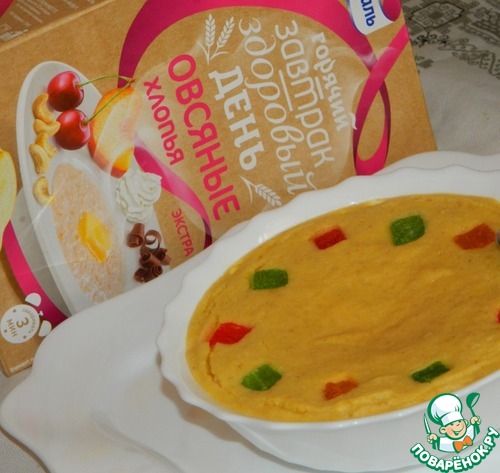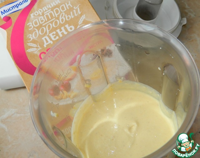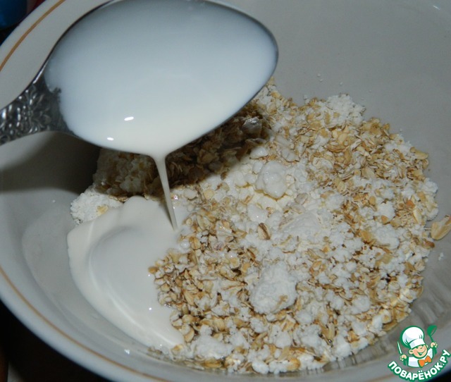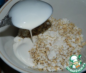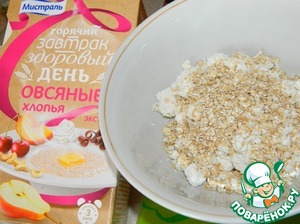 Соединяем творог с любыми хлопьями ТМ Мистраль. Я сделала с овсяными.