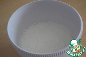 5 яичных белков взбить с 2-мя ст. л. воды и 150 г сахара