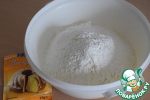 Смешать муку, крахмал и разрыхлитель - просеять через сито