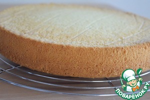 Вынимаем бисквит из духовки, снимаем разъёмное кольцо и остужаем на решётке