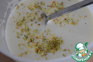 Снимаем с огня, добавляем оставшееся шампанское и 40 г фисташек, перемешиваем.