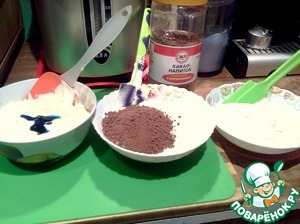 Идею слоев увидел давно на каком то сайте. Не помню уже. Очень понравилось, но представил, что будет очень сложно.. Вспомнил, когда обнаружил у шкапчике какао... Решил замутить.. Вас ведь трудно уже удивить?...:))) Правда вспомнил сфоткать, когда уже тесто сделал. Тут все просто. Рецепт базовый. И раз уж я тут уже не девственник, рискнул еще и записать. Подумал; -Не простят мне девочки и мальчики ( я ж тут не один!) :) что не отчитался..;) Итак, поехали!!!
