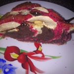 Пирог красивый получился. Краситель взяла красный и получился розовый слой. по-моему розовый цвет смотрится более натурально в пироге, как-будто с ягодами. Очень красиво смотрится на разрезе, как тортик. Спасибо за идею.