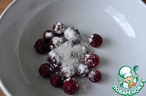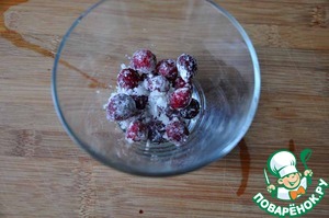 Клюкву (у меня замороженная) посыпаем сахаром (1/2 ст. ложки) и крахмалом, перемешиваем.