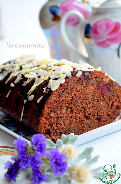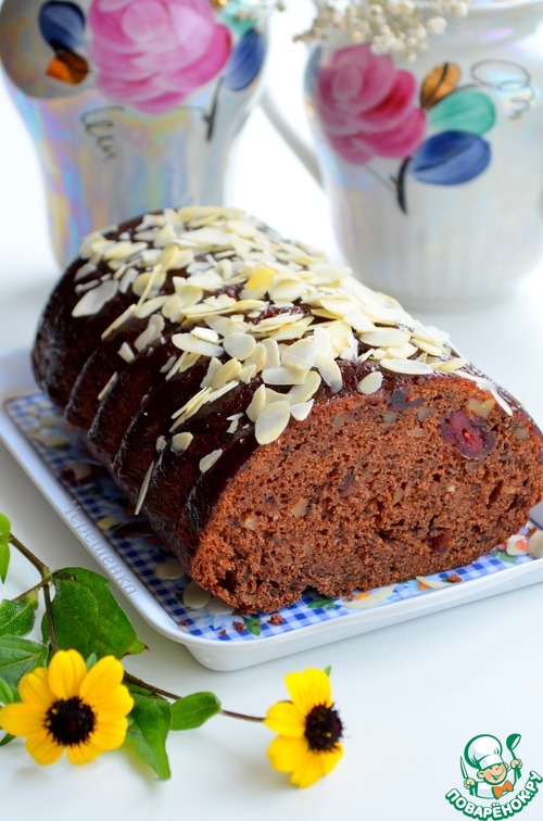 Рецепт «Шоколадный кекс с орехами и вишней»: