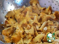 Отваренные лисички помещаем в дуршлаг, даем воде стечь.