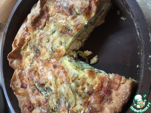Пара советов: не прокалывайте тесто сильно насквозь, а форму лучше использовать со съемными бортами. И аккуратно при формовке - остьвьте место начинке, омлет будет подниматься и если вытечет - будет сложно вынимать пирог из формы. -