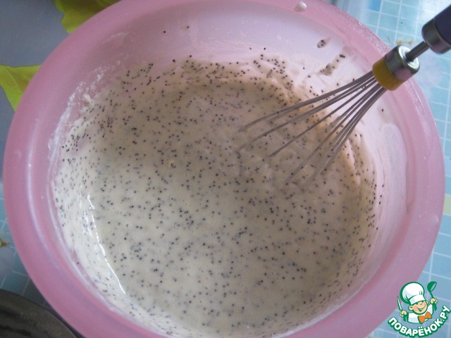 Добавить мак (проваренный) и муку с разрыхлителем, аккуратно замесить тесто.