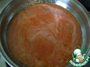 В сотейнике разогреть раст. масло, обжарить слегка лук и влить томатное пюре. Жарить, помешивая, 10 минут.