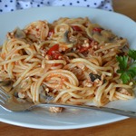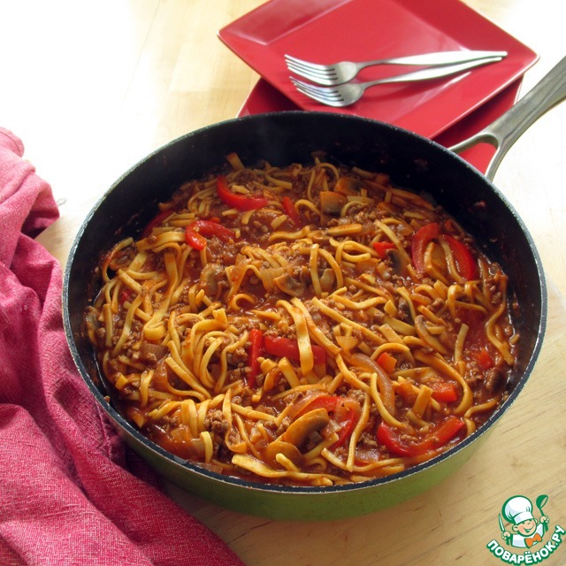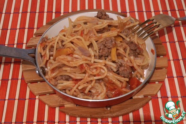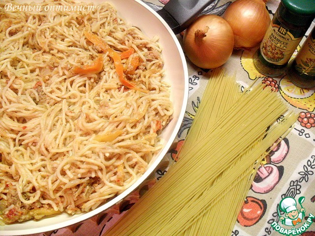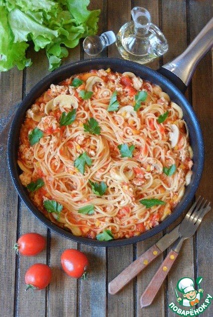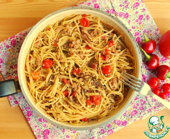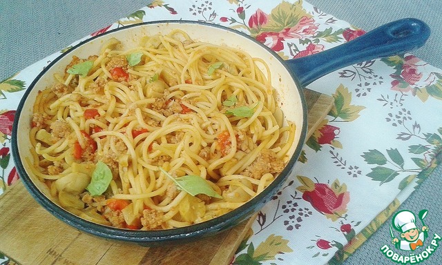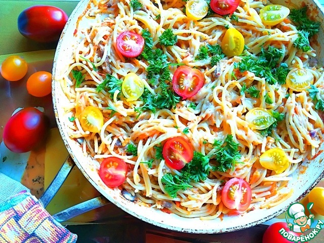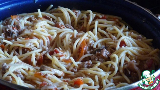 P.S. Боялась что спагетти слипнутся, но обошлось. Главное помешивать =)
