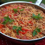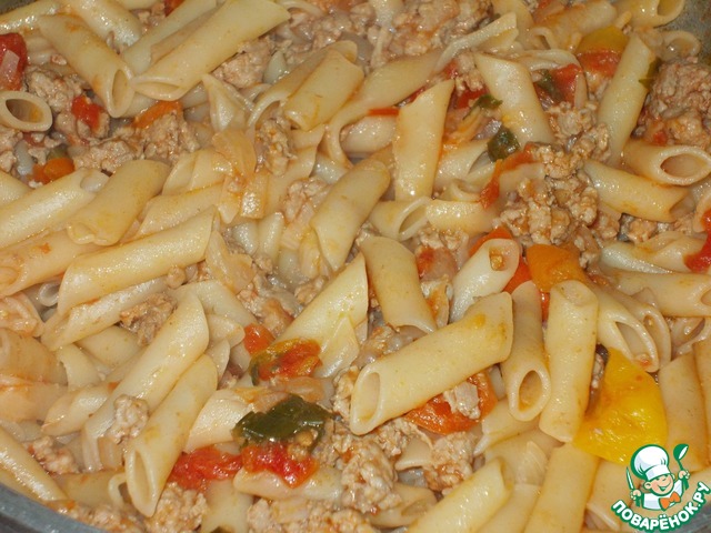[+4]Перец красный и макароны рожки. Быстрый,вкусный ужин