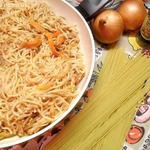 - Макаронные изделия / Макароны (типа вермишель, вес сырых макарон) — 150 г