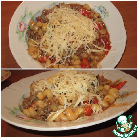 Если хотите получить пасту а-ля "Чизбургер", то просто посыпьте готовое блюдо тертым сыром, подождите, чтобы он расплавился, и сразу же подавайте.
