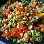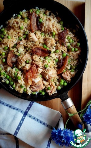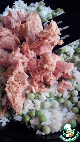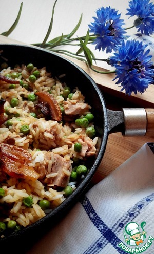 Рецепт «Рис с беконом, тунцом и зеленым горошком»: