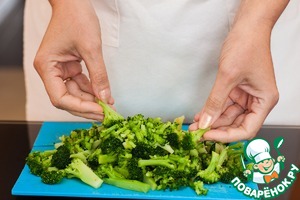 Разбираем на мелкие соцветия брокколи (у меня замороженная) -
