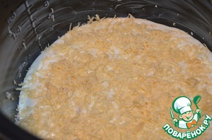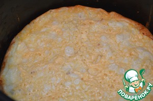 Выливаем в чашу оставшееся тесто и посыпаем его сверху сыром. Закрываем крышку мультиварки и ставим программу МУЛЬТИПОВАР на 40 минут при температуре 160 С.