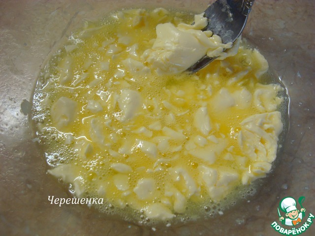 • Добавить в нашу заливку мелко тертый сыр, перемешать.