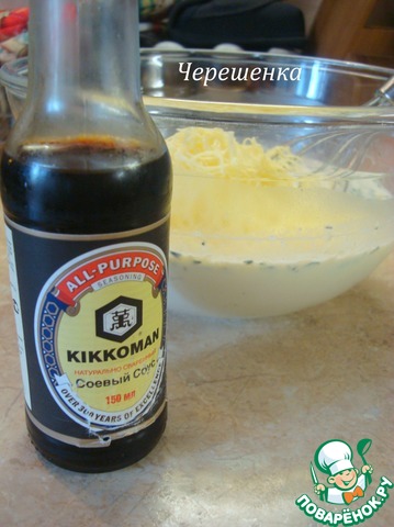 • В последнюю очередь приправить заливку соевым соусом Kikkoman. Он придаст нашему блюду замечательный цвет и вкус.