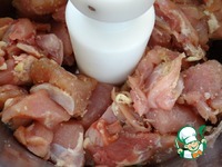 Курятину и индейку порезать на кусочки, проходящие в жерло мясорубки; В сухой посуде смешать соль и специи - высыпать к мясу, перемешать и оставить на 1 сутки в холодильнике; |
