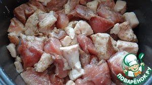 Мясо и шпик порезать на кусочки, проходящие в жерло мясорубки;