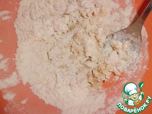 А в это время начнем готовить тесто. Данное тесто я использую давно, поэтому по традиции... В муку добавляем растительное масло и воду (кипяток), быстро вымешиваем и отправляем на 15-20 минут "отдыхать" (убираем в пакет и оставляем на столе).