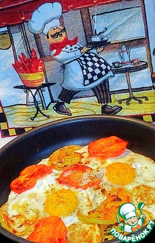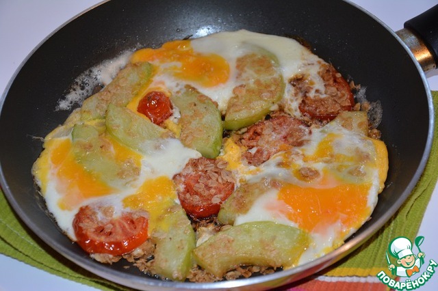 Ингредиенты для «Яичница с кабачком и помидором»:
