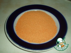 Высыпать панировку из пакетика на тарелку.
