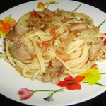 Вкусное и ароматное блюдо для всей семьи. Нежное филе свининки в окружении овощей и лапши делает блюдо неповторимо ярким, сочным и вкусным, а сливочный соус дополняет эту гармонию.