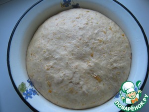 Вот тесто увеличилось в объёме, сделать обминку и опять поставить в тёплое место подходить.